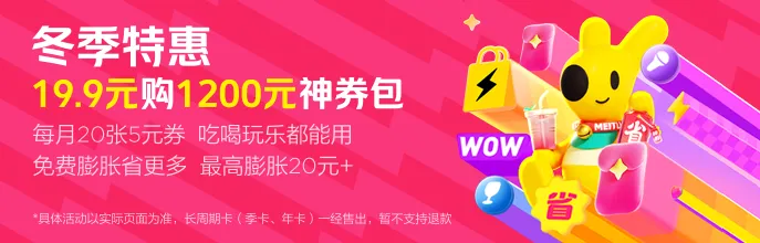 ✅ 超高性价比:年卡19.9元换1200元券价值